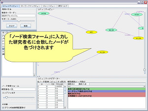 人名検索フォームコミュニティビューに表示されている研究者ノードを、 研究者名で前方一致検索します。