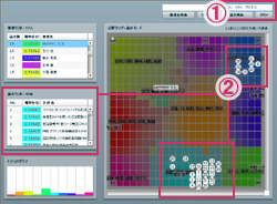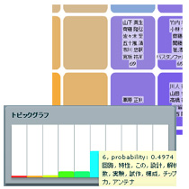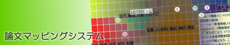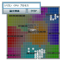 論文や著者をを分野に応じて地図のように表示するシステムです。著者の研究分野が視覚的にわかり、インタラクティブに論文を探すことができます。